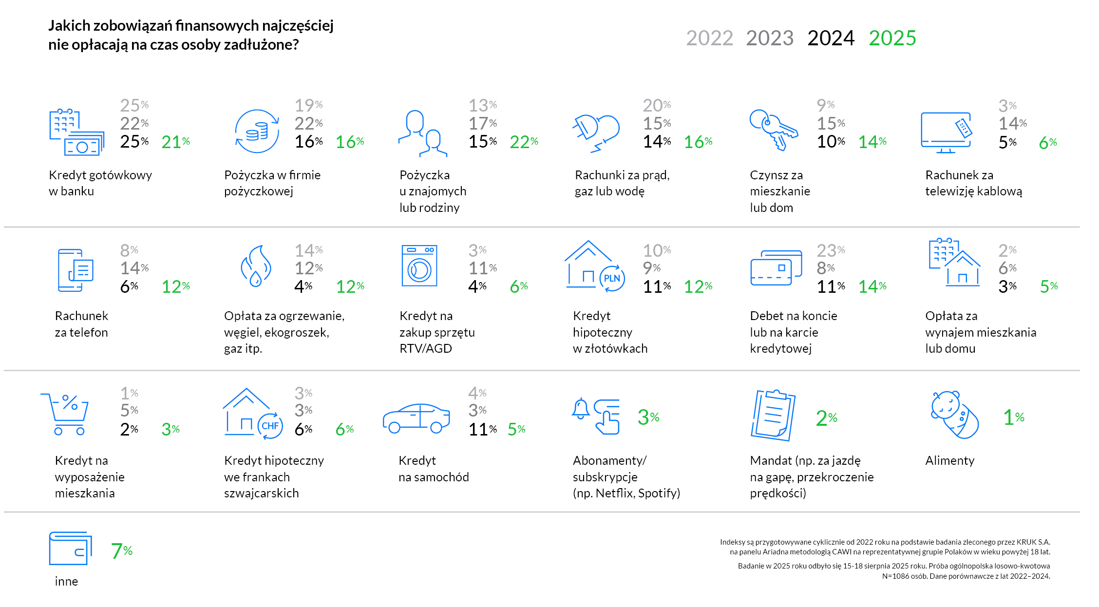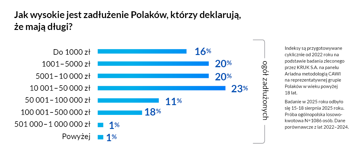 Indeksy są przygotowywane cyklicznie od 2022 roku na podstawie badania zleconego przez KRUK S.A. na panelu Ariadna metodologią CAWI na reprezentatywnej grupie Polaków w wieku powyżej 18 lat.